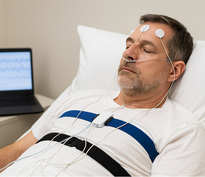 밤 동안 신체 곳곳에 센서를 부착하여 뇌파, 심장 박동, 호흡 패턴, 산소포화도, 수면 중 자세와 움직임 등을 종합적으로 관찰합니다. 이 데이터를 바탕으로 실제 수면 중 어떤 문제가 반복되고 있는지를 정확히 파악할 수 있습니다.